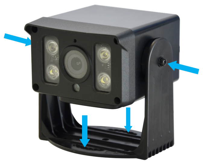 底座固定好后,將攝像頭卡在底座上,把畫面調整至需要監控的區域后,鎖緊兩側螺絲,將攝像頭固定。