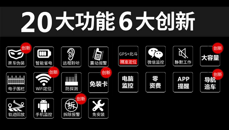 安裝:不用安裝,直接充電,充一次電用30天(通過調(diào)整回傳時間工作時間可以更長)北斗定位:屬于中國的衛(wèi)星,定位會比GPS準(zhǔn),誤差一般在5米內(nèi),但是覆蓋率不是非常的高,歐創(chuàng)芯片采用2503芯片兼容:北斗衛(wèi)星+GPS衛(wèi)星定位特點:定位會比單GPS更準(zhǔn)